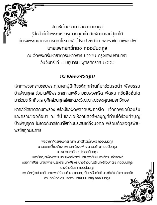 นายแพทย์ทวีทอง กออนันตกูล ม.ป.ช. ม.ว.ม.