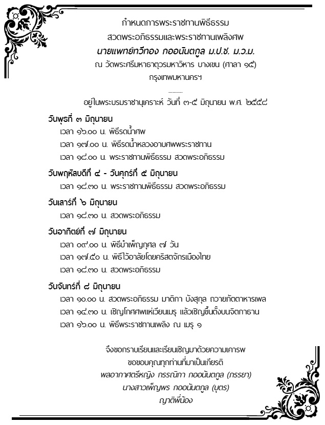 งานพระราชทานพิธีธรรม สวดพระอภิธรรมและพระราชทานเพลิงศพ
